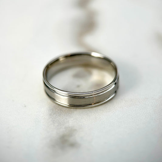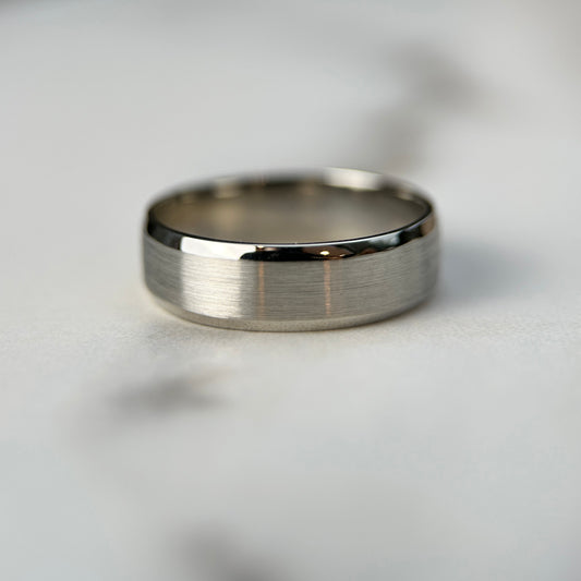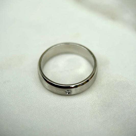 Polished Edge Band with Single Diamond and Matt Centre - 5mm