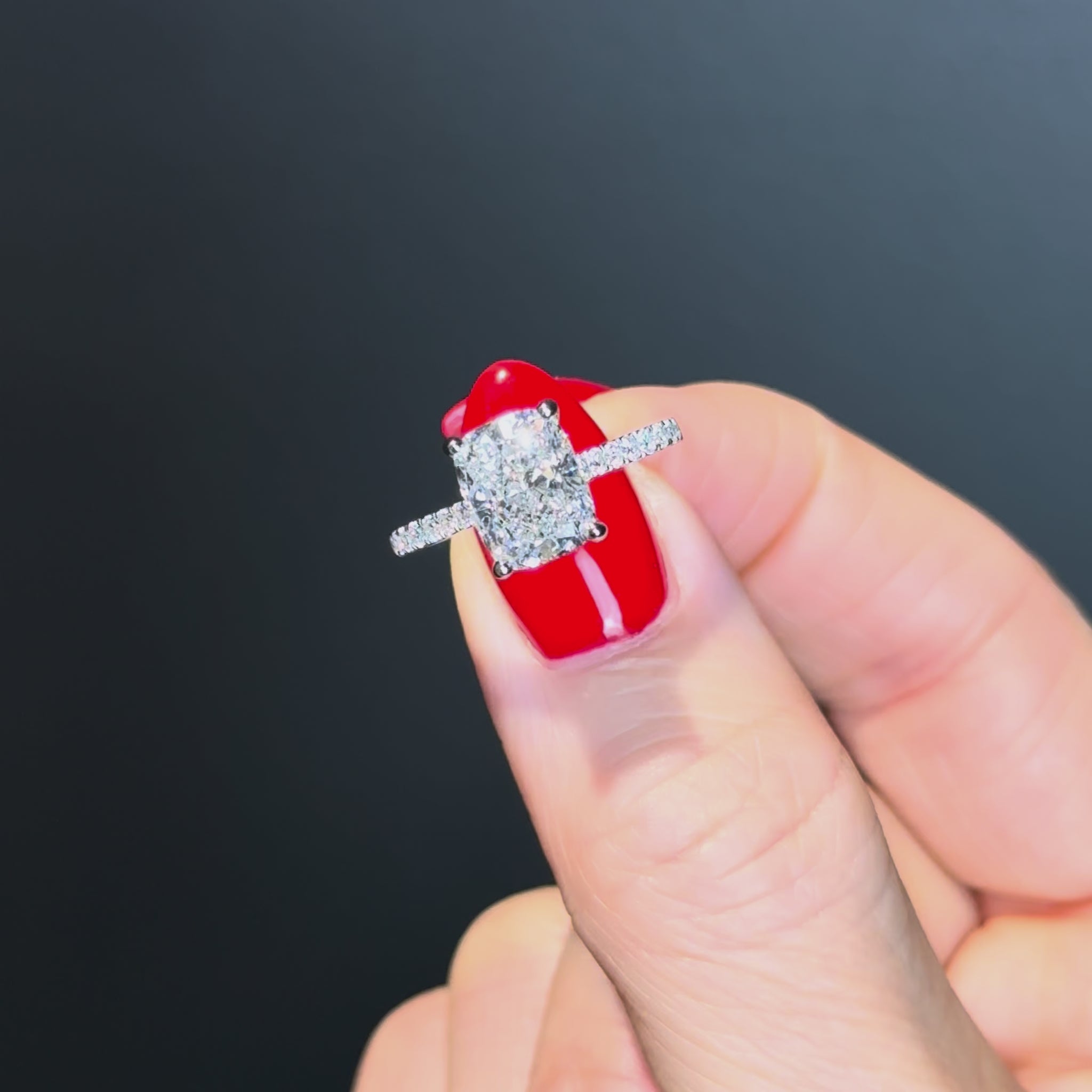 Featuring a hand picked, high spec, IGI/GIA certified, 3ct+ lab grown main diamond with our signature hidden halo and diamond bridge. For maximum impact without sacrificing elegance, this is the one.