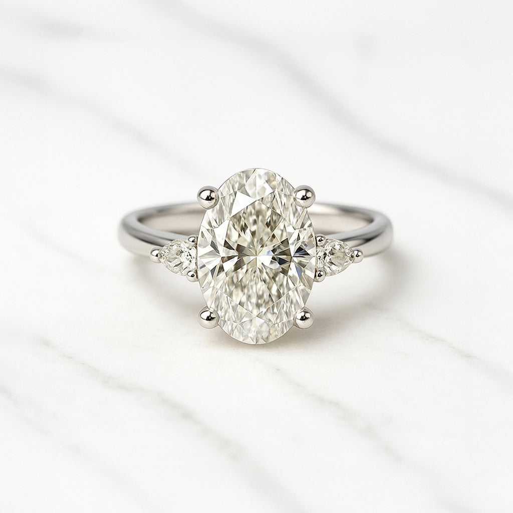 Our classic oval and pear cut diamond engagement rings feature a hand picked, ultra high spec, certified, lab grown main diamond and our signature London Diamonds setting.
