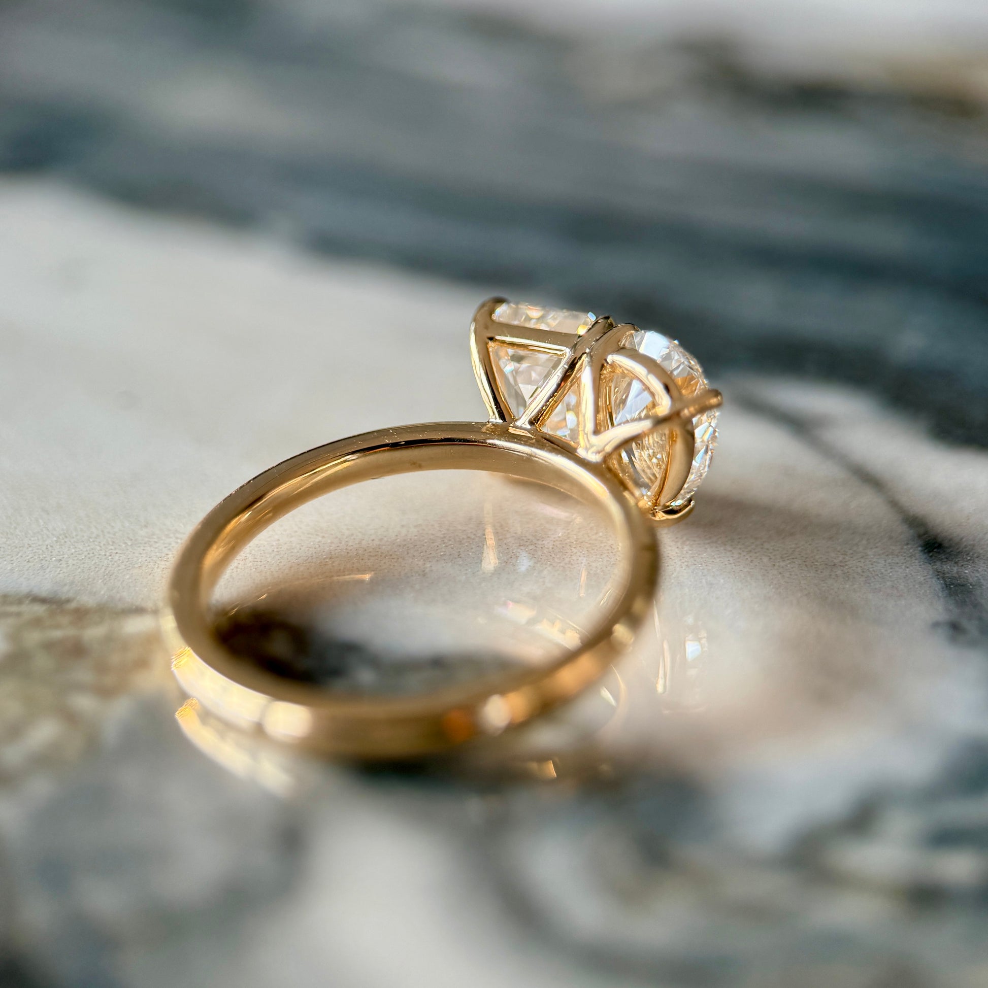 The total weight of the ring will be at least 2.50ct. We will match the two diamonds perfectly so they sit in total harmony on your finger.