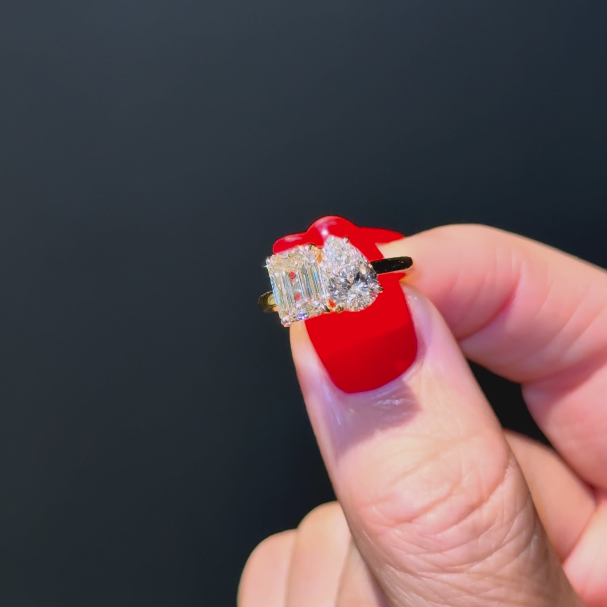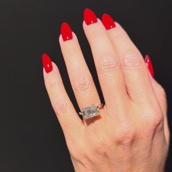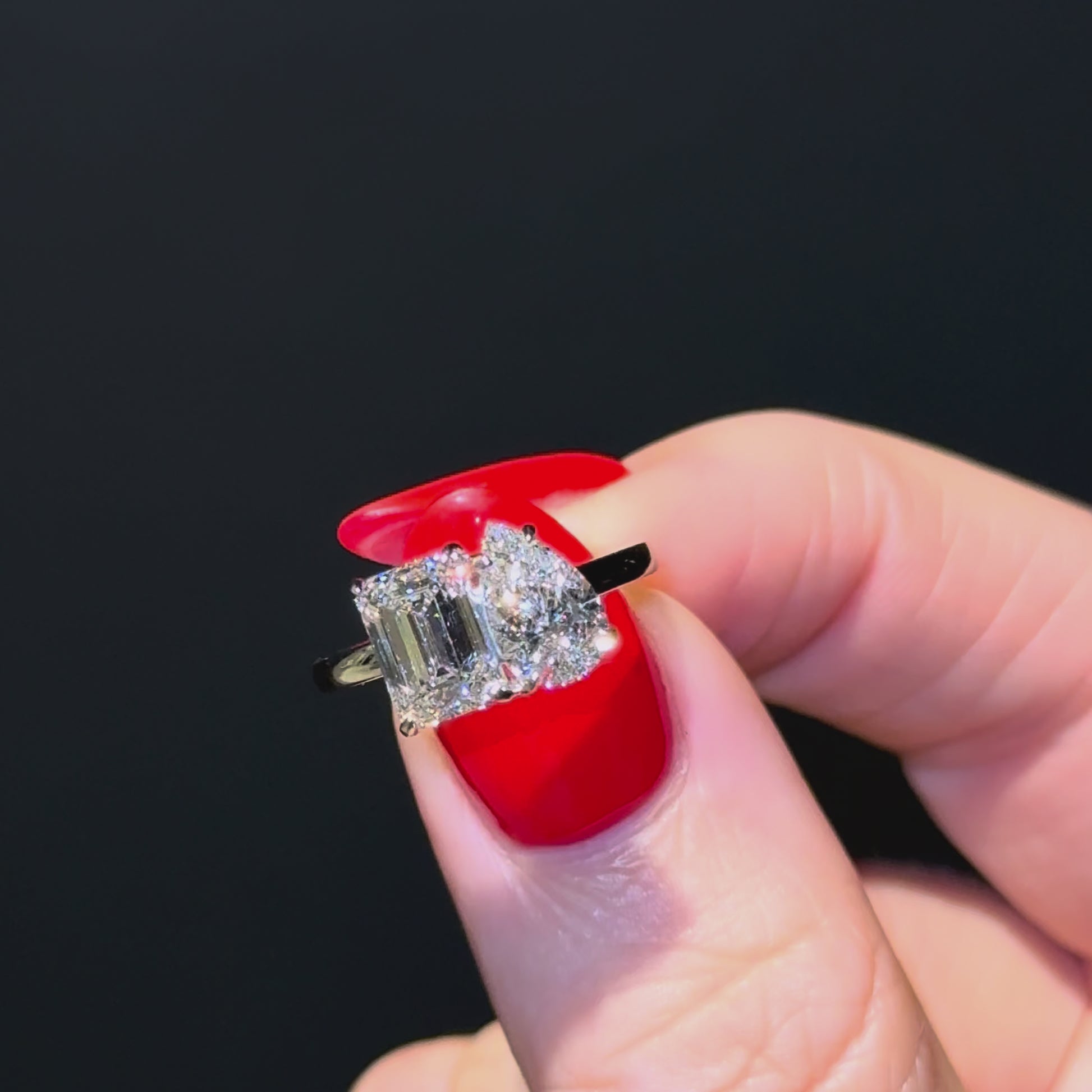 Featuring a pear cut diamond of 1ct+ and an emerald cut of at least 1.50ct and certified as D or E colour and VVS clarity but more importantly, just like our bespoke rings, we choose each diamond for maximum sparkle and fire with the optimum dimensions.