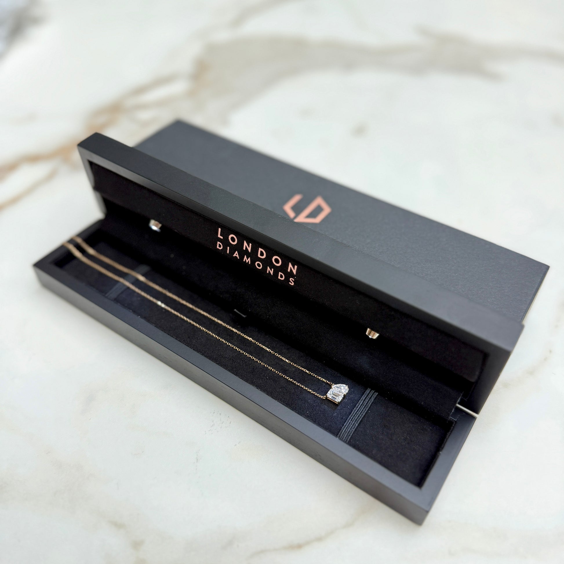 We use only the whitest and fiery lab grown diamonds for our pendants and just like our engagement rings, each one is selected the old fashioned way - by hand.